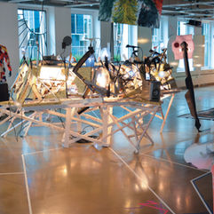 Muzikanten, performance artists, DJ’s, dansers en fashion designers zetten de sculpturen in om hun eigen werk live te tonen en vast te leggen, terwijl andere beeldend kunstenaars hun werken erop, ernaast, eronder en erboven vertonen. Kortom, een bijzondere constellatie waarin leven, liefde, werken en verbeelding met elkaar verstrengeld raken, oftewel ‘A stage for living, loving and working’